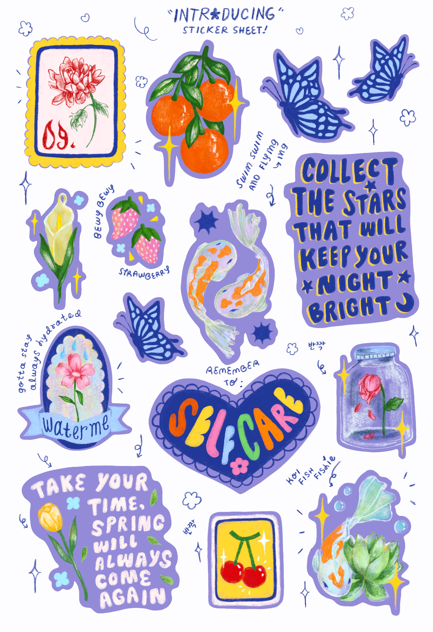 a sticker sheet inspired by the signature elements in my art